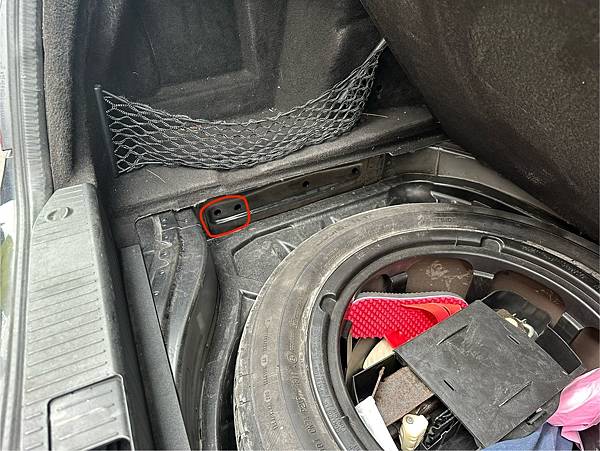 八年前我買進來時,原車已換過右前葉子板。後來在三年前我有被後車追撞左後邊,所以我有更換後行李箱蓋,及鈑修左後大樑的最尾端(即紅圈處所示的位置)。